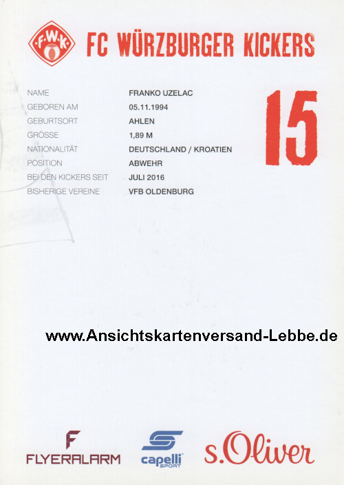 Franko Uzelac * 5.11.1994 Ahlen (FC Würzburger Kickers)