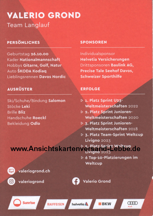 Valerio Grond * 26.10.2000 Monstein Schweiz - SC Davos - SKILANGLAUF