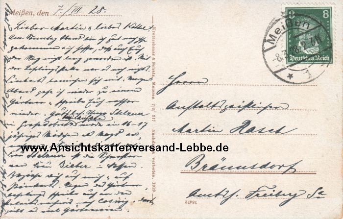 Meißen - Waldschlösschen - Wilsdruffer Straße 1 - Stadtpark - Kretzschmar & Schatz - 1928 nach Bräunsdorf Oberschöna Rasch Anstalt (Sachsen)