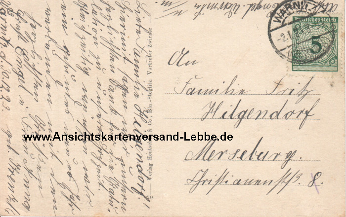 * gelaufen 1924 nach Merseburg, Christianenstr. 8, An Familie Fritz Hilgendorf *
