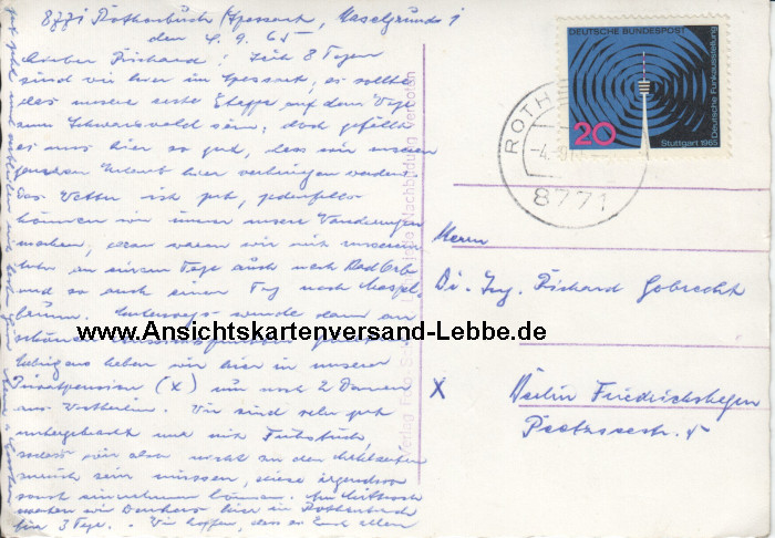 Rothenbuch i. Spessart - 1965 nach Berlin Friedrichshagen - Deutsche Bundespost Deutsche Funkausstellung Stuttgart - Landkreis Aschaffenburg - Unterfranken
