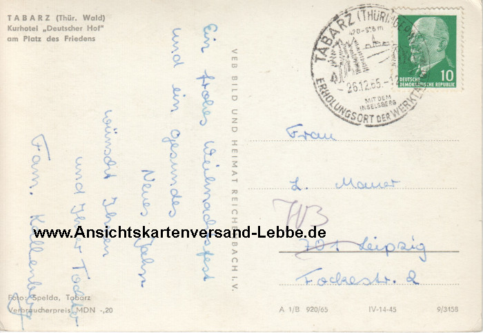 VERLAGSKENNZEICHEN/INFO: Foto: Spelda, Tabarz A 1/B 920/65 IV-14-45 9/3458