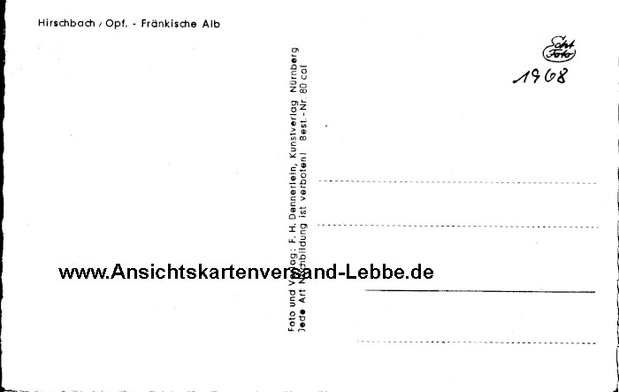 Hirschbach / Opf. - Fränkische Alb - 1968 Oberpfalz - Landkreis Amberg-Sulzbach