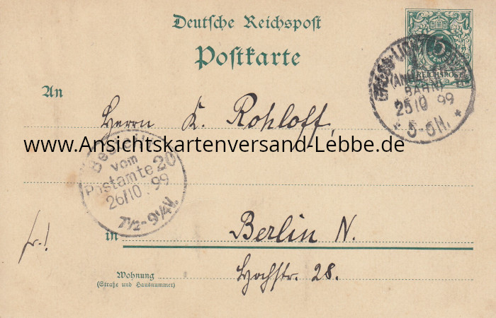 * gelaufen 1899 nach Berlin N. Hochstr. 28. Herrn Kurt Rohloff *
