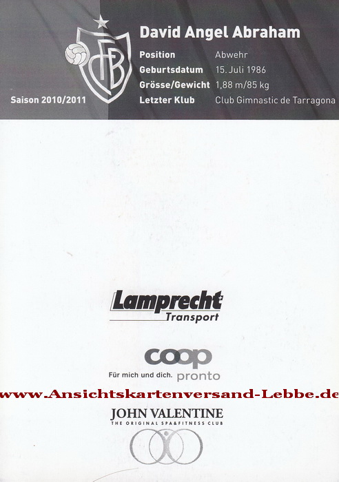 David Angel Abraham * 15.7.1986 Chabas, Santa Fe (Argentinien) 2010/2011 : FCB FC Basel 1893