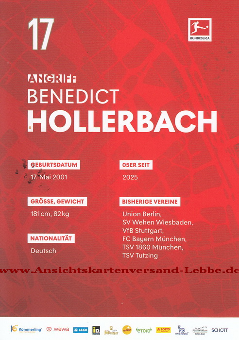 Benedict Hollerbach * 17.5.2001 Starnberg - 2025/2026 1. FSV Mainz 05