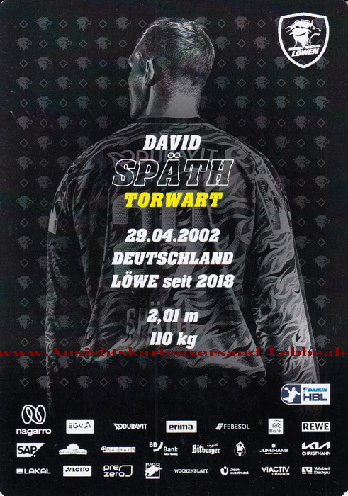 David Späth * 29.4.2002 Kaiserslautern - 2025/2026 : Rhein-Neckar Löwen - HANDBALL