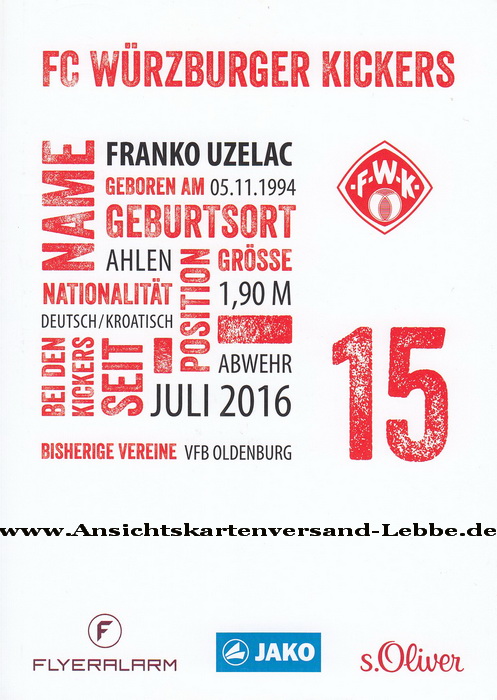 Franko Uzelac * 5.11.1994 Ahlen - 2017/2018 Würzburger Kickers / FWK