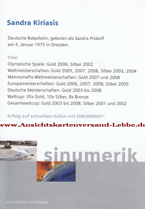 Sandra Kiriasis (Sandra Prokoff) * 4.01.1975 Dresden (RSG Hochsauerland) BOBSPORT