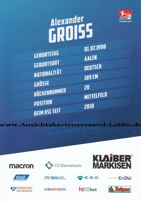 Alexander Groiß - Alexander Groiss * 1.7.1998 Aalen - 2020/2021 - KSC Karlsruher SC