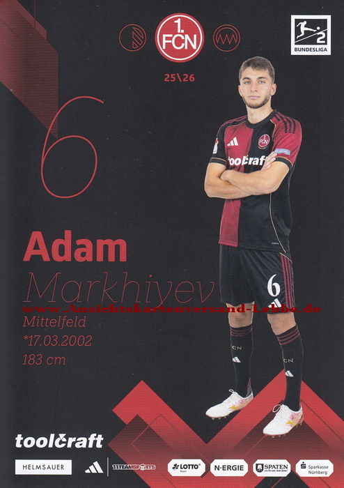 Adam Marhiev /Adam Markhiev/Adam Markhiyev * 17.3.2002 Nasran, Russland - 2025/2026 1. FCN /1. FC Nürnberg