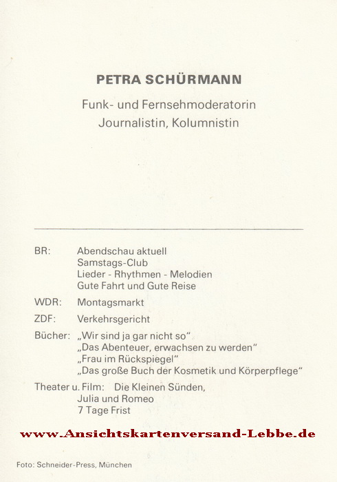 In den 1960er Jahren kam Petra Schürmann zum Bayerischen Fernsehen und begann dort eine Karriere als Ansagerin.