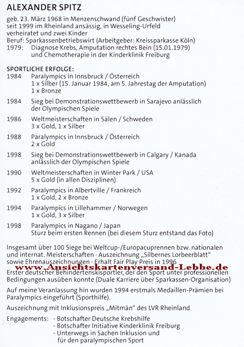Alexander Spitz * 23.03.1968 Menzenschwand - Paralympics - SKISPORT
