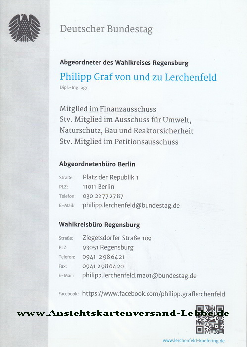 Philipp Graf von und zu Lerchenfeld * 25.5.1952 Köfering, Oberpfalz † 1.12.2017 - Wahlkreis Regensburg - Mdb - Mitglied des Bundestages