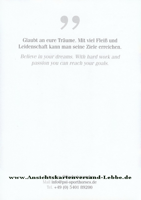 Vater: Bordeaux 28, Muttervater: Riccione; bis 2020 von Ingrid Klimke geritten