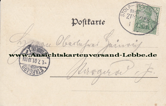 * Gelaufen 1901 nach Stargard i. P., Herrn Oberlehrer Heinrich *