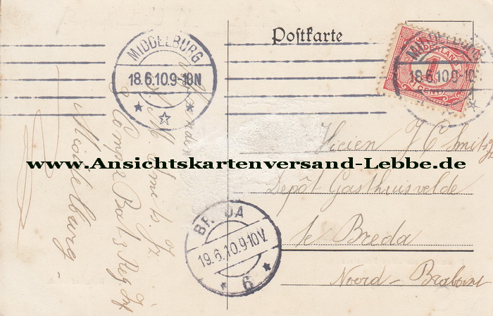 * Gelaufen 1910 nach Breda, Nord-Brabant (Provinz Noord-Brabant) Depot Gasthuisvelde, J. C. Smits *