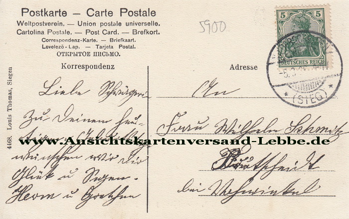 Siegen vom Häusling aus gesehen - Louis Thomas - 1906 Niederschelden nach Krutscheidt bei Vohwinkel Schmitz - Siegen-Wittgenstein - Regierungsbezirk Arnsberg