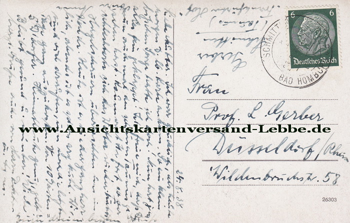 * gelaufen 1938 nach Düsseldorf / Rhein, Wildenbruchstr. 58, Frau Prof. L. Gerber (liebe Mutter) *