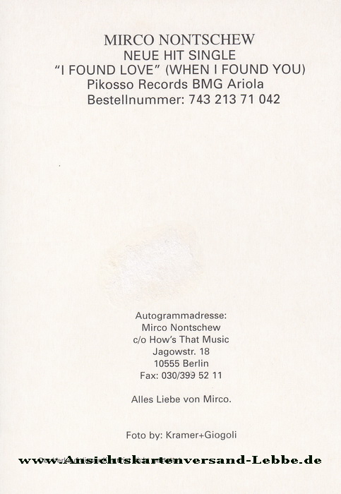 Mirco Nontschew * 29.10.1969 Ost-Berlin † am oder vor dem 3.12.2021 Berlin-Lankwitz (RTL Samstag Nacht) 1996: CD-Single I Found Love, When I Found You