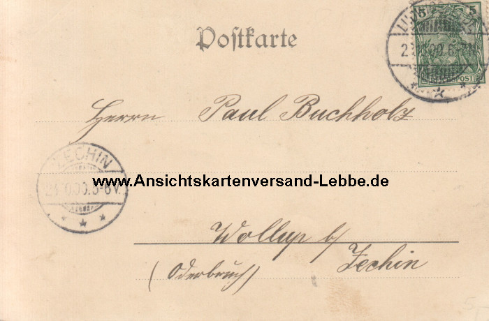Gelaufen 1900 nach Wollup b. Zechin (Oderbruch) Herrn Paul Buchholz