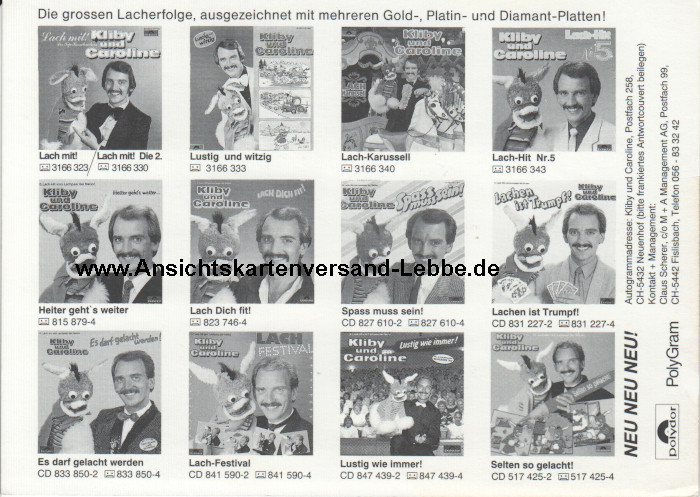 Urs Kliby * 24.12.1950 (Urs Kliebenschädel) aus Kreuzlingen Kanton Thurgau - Kliby und Caroline (1986: Lachen ist Trumpf / 1987: Es darf gelacht werden)