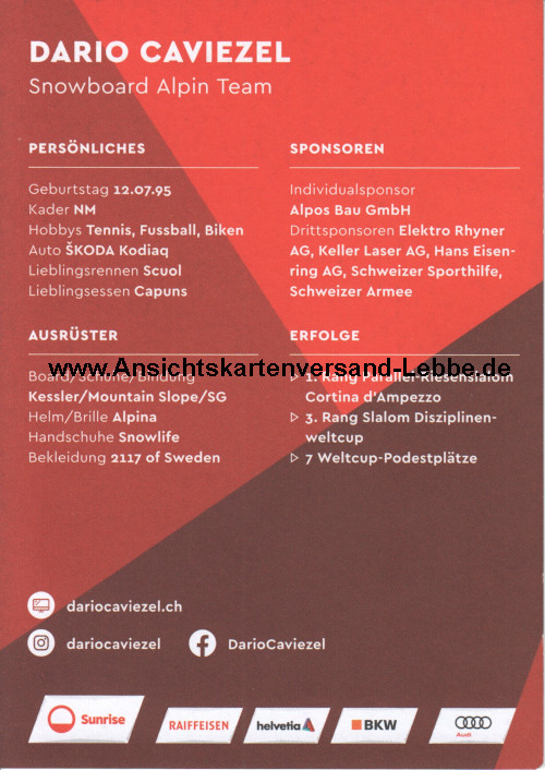Dario Caviezel * 12.7.1995 Chur - Kanton Graubünden - Parallel-Riesenslalom - Parallelslalom (SNOWBOARD)