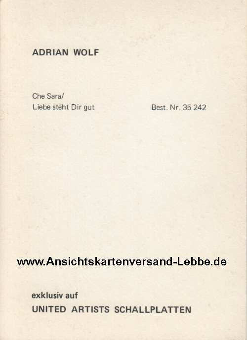 Adrian Wolf * 24.6.1949 Hamburg (Adrian Facklam-Wolf) Che sara / Liebe steht Dir gut