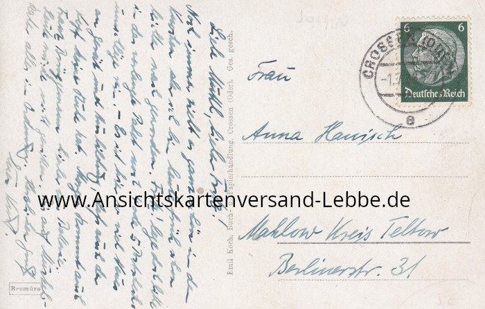 VERLAG/PUBLISHER/EDITEUR: Emil Koch, Buch- u. Papierhandlung, Crossen (Oder)