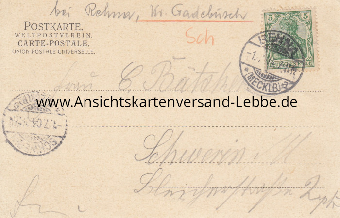 * gelaufen 1904 nach Schwerin i M., Bleicherstraße 2 ptr. Frau C. Bätscher (?) *