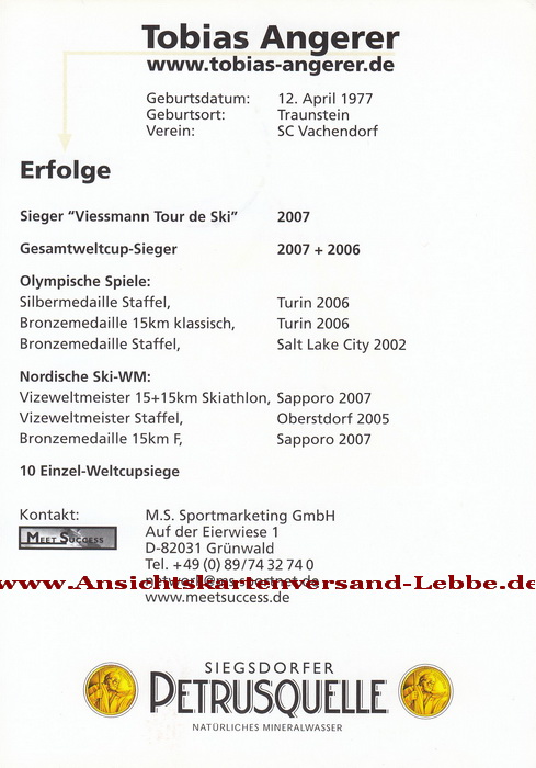 Tobias Angerer * 12.4.1977 Traunstorf, Ortsteil Traunstein s (SC Vachendorf) SKILANGLAUF