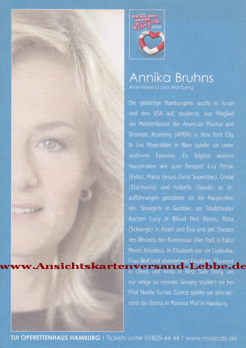 Annika Bruhns * 8.8.1966 Hamburg - Operettenhaus Hamburg : Fernsehmoderatorin Lisa Wartberg in der Udo Jürgens Musical-Komödie : Ich war noch niemals in New York