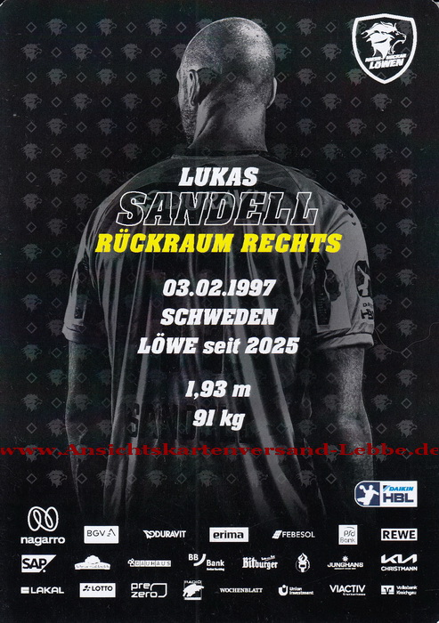 Lukas Sandell * 3.02.1997 Eslöv Schweden - 2025/2026 : Rhein-Neckar-Löwen (HANDBALL)