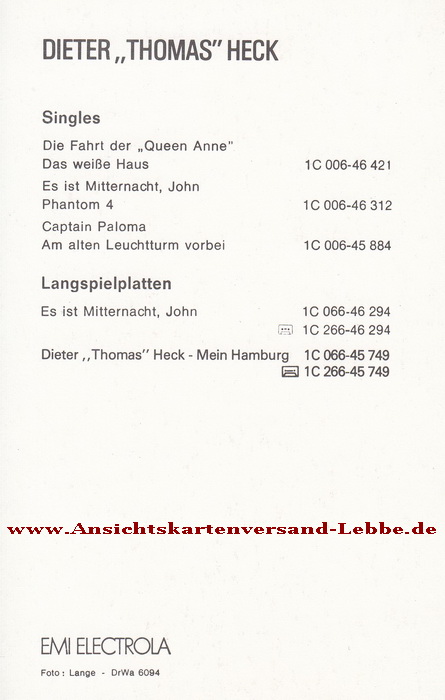 Er sang auch unter den Pseudonymen Dieter Heck und Teddy Lombardo.