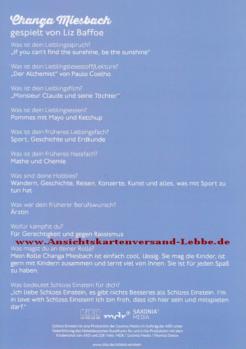 Liz Baffoe * 6.7.1969 Bad Godesberg, jetzt Bonn ARD/KiKA/MDR : Changa Miesbach in SCHLOSS EINSTEIN