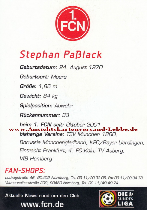 Stephan Paßlack * 24.08.1970 Moers - 1. FC Nürnberg/1. FCN