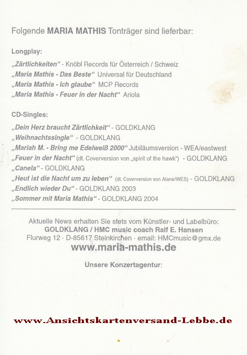Nach der Geburt ihres Sohnes machte Maria Mathis eine künstlerische Pause, bevor sie 2001 mit dem Titel Feuer in der Nacht ein Comeback einleitete.