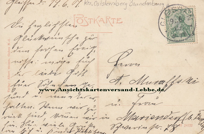 Gelaufen 1909 nach Mariendorf b. Berlin, Schwerinstr. 78, Herrn A. Muraffski