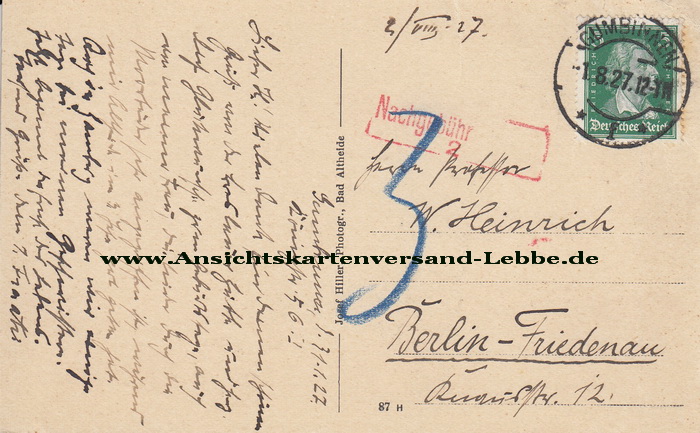 * Gelaufen 1927 nach Berlin-Friedenau, Herrn Professor W. Heinrich *