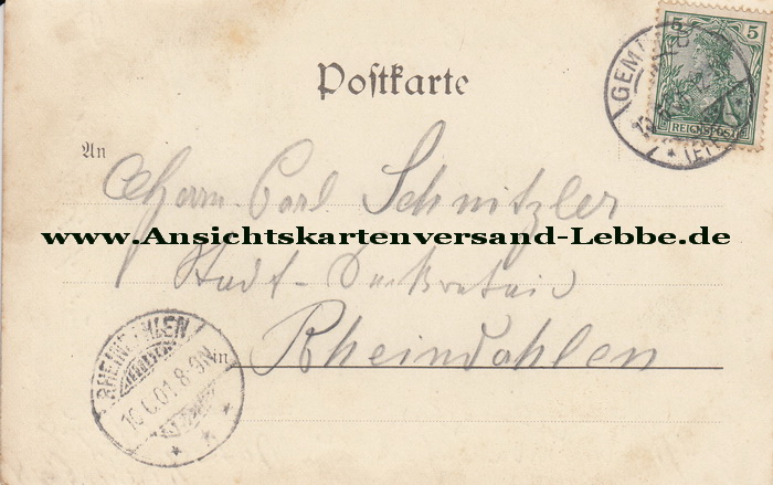 * gelaufen 1901 nach Rheindahlen, Herrn Carl Schnitzler, Stadt-Sekretair *