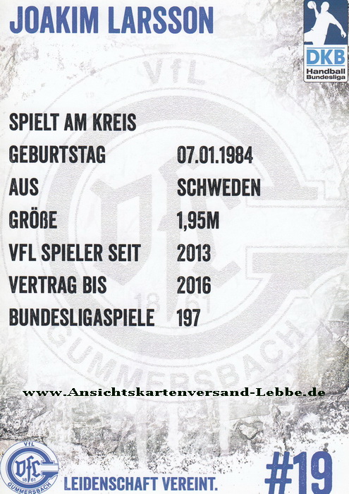 Joakim Larsson * 7.01.1984 Herrestad, Gemeinde Vadstena, Schweden - VfL Gummersbach - HANDBALL