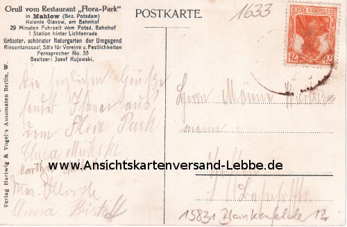 .Gruß vom Restaurant "Flora-Park" in Mahlow (Bez.Potsdam)