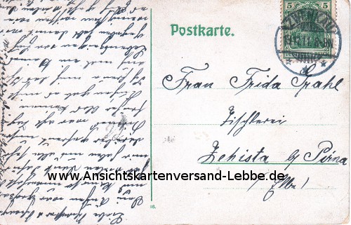 Gelaufen 1911 nach Zehista b Pirna (Elbe), Frau Frida Grahl Tischlerei (Schwester/Schwager)