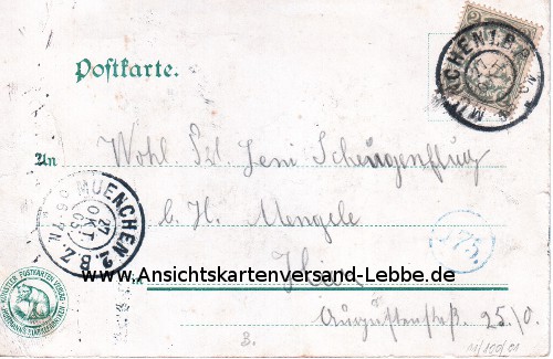 GELAUFEN 1905 nach München, Augustenstr. 25/O., Wohl. Frl. Leni Sch... b. H.Mengele