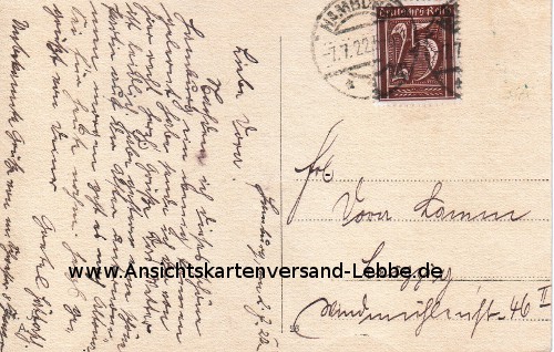 gelaufen 1922 nach Leipzig, Windmühlenstr. 46 II, Frl. Dora Lamm