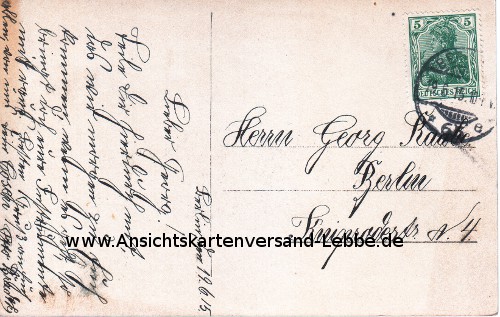 GELAUFEN 1915 nach Berlin, Kniprodestr. N. 4. Herrn Georg Raabe.