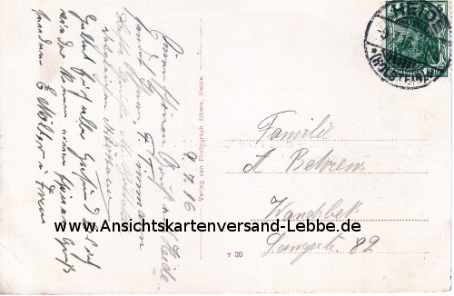 GELAUFEN 1916 nach Wandsbek (Hamburg), Langestr. 82, Familie A. Behrens