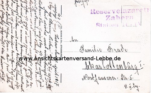 ANKUNFTSTEMPEL/ANDERE STEMPEL: Reservelazarett Zabern Station II-IV