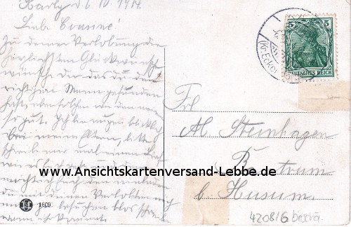 GELAUFEN 1914 nach Rantrum b. Husum (Nordfriesland), Frl. Steinhagen (Cousine)