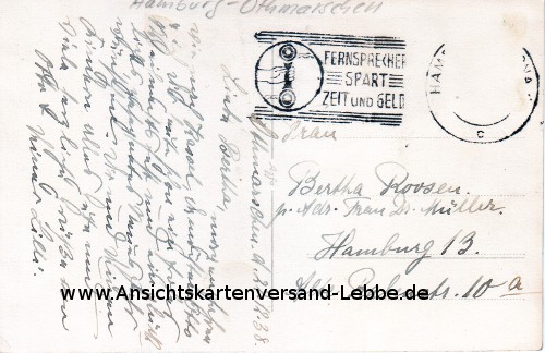 GELAUFEN 1938 nach Hamburg 13. Alte Rabenstr. 10 a, Frau Bertha Roosen p. Adr. Frau Dr. Müller